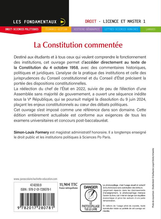 Synthétique et pédagogique, ce manuel permet d'accéder directement au texte de la Constitution du 4 octobre 1958 avec des commentaires historiques, politiques et juridiques.