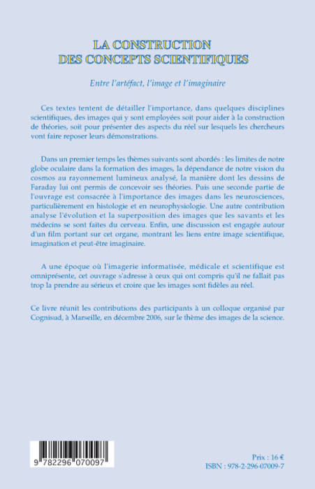 Ces textes tentent de détailler l'importance, dans le milieu scientifique, des images qui y sont employées, soit pour théoriser, soit pour présenter des aspects du réel. Il sera question des limites de notre globe oculaire dans la formation des images, de l'importance des images dans les neurosciences (en histologie, en neurophysiologie), ainsi que du lien entre image scientifique, imagination et même imaginaire. A l'heure de l'imagerie informatisée, médicale et scientifique, voici une réflexion sur la fidélité des images au réel.