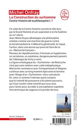 Ce volet de la Contre-histoire raconte le rôle tenu par le Grand Homme et son aspiration à la Vie Sublime au xixe siècle. Jean-Marie Guyau développe une philosophie vitaliste comme une machine de guerre contre la morale kantienne. Il défend la générosité, le risque, l’action, dans une oeuvre qui pourrait faire de lui un Nietzsche français. Penseur du républicanisme, il formule un hygiénisme, un racialisme, un natalisme, dangereusement parents de l’idéologie de Vichy à venir. La figure ontologique du « S urhomme » de Nietzsche n’est pas sans relation avec cette métaphysique. Nietzsche commence avec Schopenhauer et Wagner, continue avec un long moment épicurien et termine avec l’éloge d’un « S urhomme » ultra-caricaturé. Or, celui-ci nomme l’individu ayant compris que la volonté de puissance a les pleins pouvoirs, qu’il faut vouloir cette volonté qui nous veut, puis l’aimer pour accéder à une jubilation suprême. Une technique de sagesse à la portée de tous.