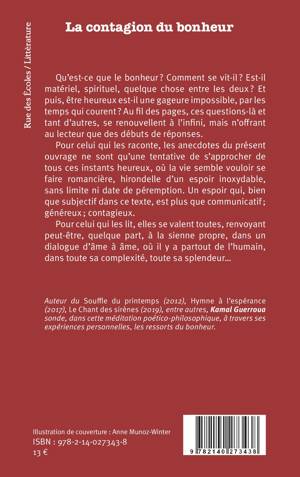 Qu'est-ce que le bonheur ? Comment se vit-il ? Est-il matériel, spirituel, quelque chose entre les deux ? Et puis, être heureux est-il une gageure impossible, par les temps qui courent ? Au fil des pages, ces questions-là et tant d'autres, se renouvellent à l'infini, mais n'offrant au lecteur que des débuts de réponses. Pour celui qui les raconte, les anecdotes du présent ouvrage ne sont qu'une tentative de s'approcher de tous ces instants heureux, où la vie semble vouloir se faire romancière, hirondelle d'un espoir inoxydable, sans limite ni date de péremption. Un espoir qui, bien que subjectif dans ce texte, est plus que communicatif; généreux; contagieux. Pour celui qui les lit, elles se valent toutes, renvoyant peut-être, quelque part, à la sienne propre, dans un dialogue d'âme à âme, où il y a partout de l'humain, dans toute sa complexité, toute sa splendeur...