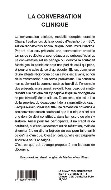Ce livre propose au lecteur d’entrer dans les conversations cliniques que les psychanalystes peuvent avoir entre eux à propos du cas d’un patient. Il y trouvera ainsi l’exposé et la discussion de huit cas. L’orientation que Jacques-Alain Miller a toujours donnée à la clinique est celle de l’accueil de la parole du patient, considéré dans sa singularité. Ce n’est donc pas une clinique close, du « dernier mot », mais une clinique évolutive, dialectique. Car il s’agit, avant tout, de saisir en quoi l’analyse est aussi une conversation sous transfert, qui vise à saisir ce que le sujet a de plus réel, son symptôme. L’ouvrage se conclut sur un entretien clinique unique, conduit par J.-A. Miller, dont la discussion est reprise dans son entier.