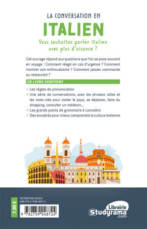 CE LIVRE CONTIENT • Les règles de prononciation • Une série de conversations, avec les phrases utiles et les mots clés pour visiter le pays, se déplacer, faire du shopping, consulter un médecin… • Les grands points de grammaire à connaître • Des encadrés pour mieux comprendre la culture italienne