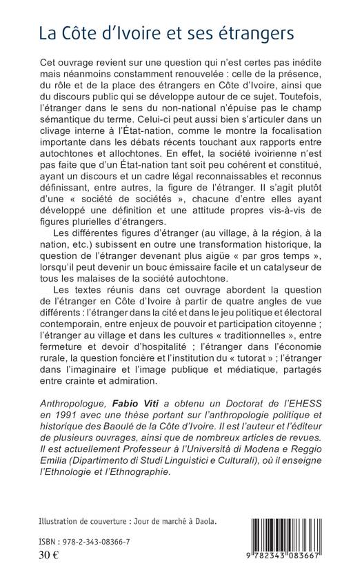Cet ouvrage travaille sur la question de la présence et du rôle des étrangers en Côte d'Ivoire. Le discours public autour de cette question y est analysé, ce qui permet de dégager une typologie de l'État et de la société ivoirienne. Véritable "société de sociétés", où différents rapports aux figures plurielles d'étrangers co-existent, la Côte d'Ivoire nous est présentée sous un jour différent. Un ouvrage collectif qui affine et complexifie le regard.