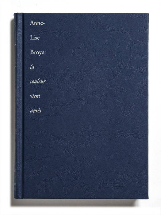 "La couleur vient après" d’Anne-Lise Broyer revisite les différentes séries que l’artiste a developpées depuis près d’une trentaine d’années. C’est le lieu pour elle de proposer une nouvelle lecture d’images que le lecteur a pu découvrir dans les précédents et nombreux ouvrages qu’elle a publiés. Anne-Lise Broyer joue, en quelque sorte, une nouvelle interprétation de son oeuvre dans une mise en séquence-montage originale qu’elle maîtrise toujours dans toutes les conceptions de ses livres. Ce recueil est l’occasion de construire un nouveau récit photographique – et de découvrir de nombreux inédits – aux accents littéraires que l’on retrouve toujours dans son oeuvre.