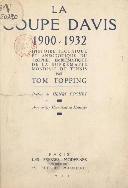 Histoire technique et anecdotique du trophée emblématique de la suprématie mondiale du tennis. Avec 15 hors-texte en héliotypo