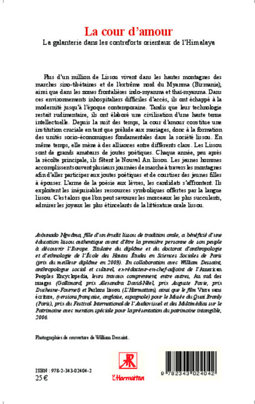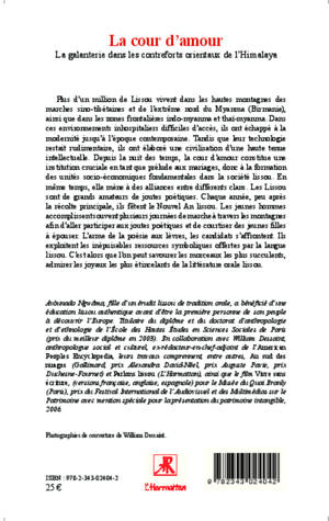 Plus d'un million de Lissou vivent dans les hautes montagnes sino-tibétaines et de l'extrême nord du Myanma (Birmanie). Depuis la nuit des temps, la cour d'amour constitue une institution cruciale en tant que prélude aux mariages, donc à la formation des unités socio-économiques fondamentales dans la société lissou. Chaque année, lors du Nouvel An lissou, les jeunes hommes accomplissent souvent plusieurs journées de marche afin d'aller participer aux joutes poétiques et de courtiser des jeunes filles à épouser.
