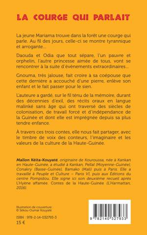 La jeune Mariama trouve dans la forêt une courge qui parle. Au fil des jours, celle-ci se montre tyrannique et arrogante... Daouda et Odia que tout sépare, l'un pauvre et orphelin, l'autre princesse aimée de tous, vont se rencontrer à la suite d'évènements extraordinaires... Gnouma, très jalouse, fait croire à sa coépouse que cette dernière a accouché d'une pierre, enlève son enfant et le fait passer pour le sien. L'auteure a gardé, sur le fil ténu de la mémoire, durant des décennies d'exil, des récits oraux en langue malinké sans âge qui ont traversé des siècles de colonisation, de travail forcé et d'indépendance de la Guinée et dont elle est imprégnée depuis sa plus tendre enfance. À travers ces trois contes, elle nous fait partager, avec le timbre de voix des conteurs, l'imaginaire et les valeurs de la culture de la Haute-Guinée. À partir de 14 ans.