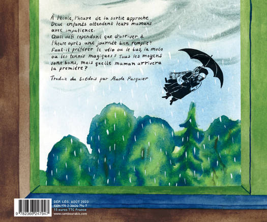 À l'école, l'heure de la sortie approche et deux enfants attendent leurs mamans avec impatience. Quel défi cependant que d'arriver à l'heure après une journée bien remplie ! Faut-il préférer le vélo ou le bus, la moto ou les tennis magiques ? Tous les moyens sont bons, mais quelle maman arrivera la première ?