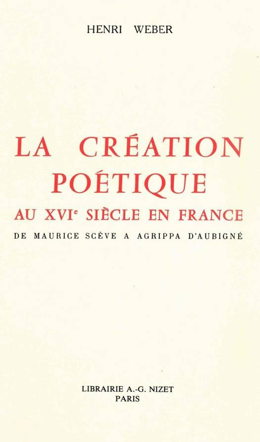 La Création poétique au XVIe siècle en France