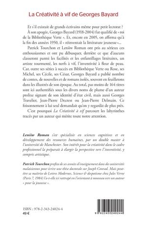 Et s'il existait de grands écrivains même pour petit lectorat ? À son apogée, Georges Bayard (1918-2004) fut qualifié de roi de la Bibliothèque Verte . Et, encore en 2005, on affirma qu'à la fin des années 1950, il réinventait la littérature jeunesse ... Patrick Tourchon et Leniiw Roman ont pris au sérieux ces enthousiasmes et ont pu débusquer, derrière ce que d'aucuns classeront parmi les facilités et les enfantillages littéraires, un artiste tourmenté, les nerfs à vif, l'inventivité à fleur de peau. Car, outre ses séries à succès en Bibliothèque Verte ou Rose, ses Michel, ses Cécile, ses César, Georges Bayard a publié nombre de contes, de nouvelles et de romans isolés, souvent en feuilletons dans les illustrés de son époque. Au total, pas moins de 164 titres sont ici authenti és sous les divers noms de plume d'un auteur prolixe signant de son identité d'état civil, mais aussi Georges Travelier, Jean-Pierre Decrest ou Jean-Pierre Delmain. Ce foisonnement à lui seul demandait qu'on y regardât de plus près. C'est pourquoi La Créativité à vif parcourt les labyrinthes tracés par un auteur qui mérite toute notre attention.