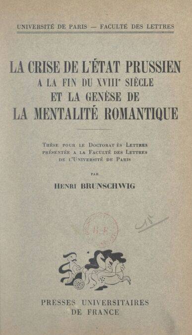 4. La crise de l'État prussien à la fin du XVIIIe siècle et la genèse de la mentalité romantique