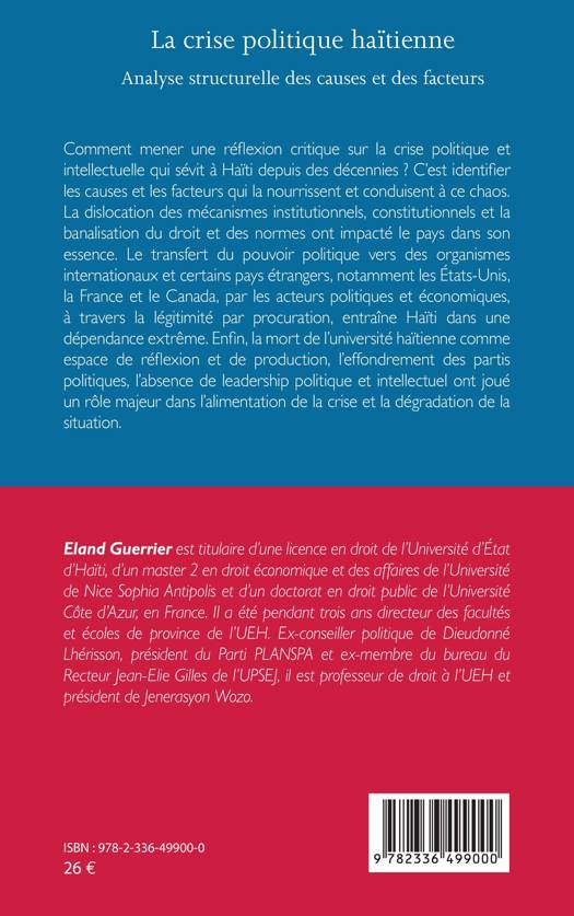 Comment mener une réflexion critique sur la crise politique et intellectuelle qui sévit à Haïti depuis des décennies ? C'est identifier les causes et les facteurs qui la nourrissent et conduisent à ce chaos. La dislocation des mécanismes institutionnels, constitutionnels et la banalisation du droit et des normes ont impacté le pays dans son essence. Le transfert du pouvoir politique vers des organismes internationaux et certains pays étrangers, notamment les États-Unis, la France et le Canada, par les acteurs politiques et économiques, à travers la légitimité par procuration, entraîne Haïti dans une dépendance extrême. Enfin, la mort de l'université haïtienne comme espace de réflexion et de production, l'effondrement des partis politiques, l'absence de leadership politique et intellectuel ont joué un rôle majeur dans l'alimentation de la crise et la dégradation de la situation.