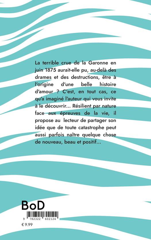 La terrible crue de la Garonne en juin 1875 aurait-elle pu, au-delà des drames et des destructions, être à l'origine d'une belle histoire d'amour ? C'est, en tout cas, ce qu'a imaginé l'auteur qui vous invite à le découvrir... Résilient par nature face aux épreuves de la vie, il invite le lecteur à partager son idée que de toute catastrophe peut aussi parfois naître quelque chose de nouveau et positif...