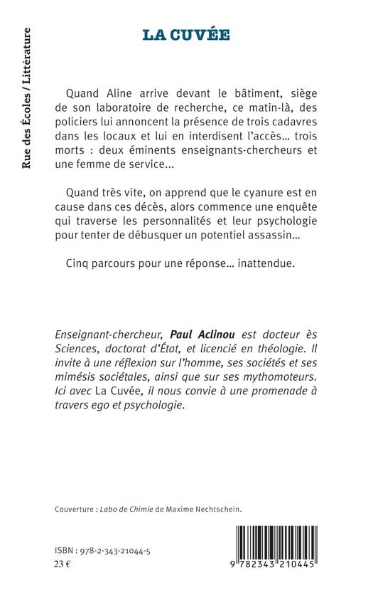 Quand Aline arrive devant le bâtiment, siège de son laboratoire de recherche, ce matin-là, des policiers lui annoncent la présence de trois cadavres dans les locaux et lui en interdisent l'accès... trois morts: deux éminents enseignants-chercheurs et une femme de service... Quand très vite, on apprend que le cyanure est en cause dans ces décès, alors commence une enquête qui traverse les personnalités et leur psychologie pour tenter de débusquer un potentiel assassin... Cinq parcours pour une réponse... inattendue.