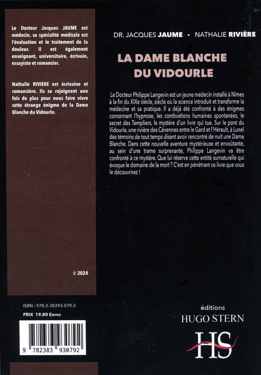 Le Docteur Philippe Langevin est un jeune médecin installé à Nîmes à la fin du XIXe siècle, siècle où la science introduit et transforme la médecine et sa pratique. Il a déjà été confronté à des énigmes concernant l'hypnose, les combustions humaines spontanées, le secret des Templiers, le mystère dun livre qui tue. Sur le pont du Vidourle, une rivière des Cévennes entre le Gard et l'Hérault, à Lunel des témoins de tout temps disent avoir rencontré de nuit une Dame Blanche. Dans cette nouvelle aventure mystérieuse et envoûtante, au sein dune trame surprenante, Philippe Langevin va être confronté à ce mystère. Que lui réserve cette entité surnaturelle qui évoque le domaine de la mort ?? C'est en pénétrant ce livre que vous le découvrirez !