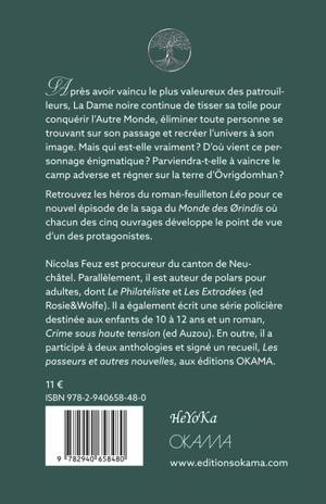 Après avoir vaincu le plus valeureux des patrouilleurs, La Dame noire continue de tisser sa toile pour conquérir l’Autre Monde, tuertoute personne se trouvant sur son passage et recréer l’univers à son image.Mais qui est-elle ? D’où vient ce personnage énigmatique ? Arrivera-t-elle à vaincre le camp adverse et régner sur cette terre ?Suivez cette aventure du point de vue de l’ennemie des défenseurs d’Övrigdomhan.