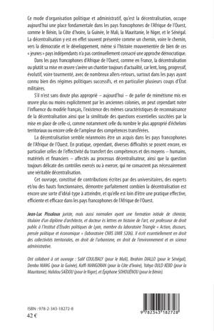 Cet ouvrage, constitué de contributions écrites par des universitaires, des experts et/ou des hauts fonctionnaires, démontre parfaitement combien la décentralisation est encore une sorte d'idéal-type à atteindre, et qu'elle est loin d'être une pratique effective, efficiente et efficace dans les pays francophones d'Afrique de l'ouest.