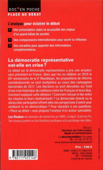 Le débat sur la démocratie représentative a pris une ampleur sans précédent en France. Alors que l'on va célébrer en 2018 le 60e anniversaire de la Ve République, les propositions de réforme constitutionnelle se sont multipliées au cours des campagnes électorales de 2017. Les élections se sont déroulées sur fond d'une crise historique de confiance entre les Français et leurs élus. Comment expliquer cette défiance ? Comment renouer le lien entre les citoyens et leurs représentants ? La démocratie directe ou la démocratie participative offrent-elles des perspectives d'avenir pour améliorer la vie démocratique ? Pour répondre à ces questions, « Place au débat » vous propose l'analyse d'un auteur spécialiste.