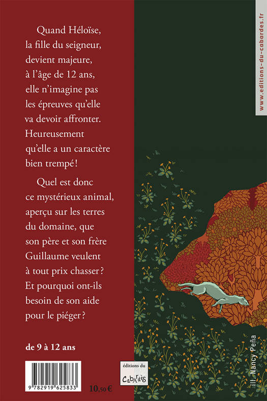 Voici une aventure qui se déroule au Moyen Age, avec en fond de récit la mythique chasse à la licorne. Quand Héloïse, la fille du seigneur, devient majeure, à l’âge de 12 ans, elle n’imagine pas les épreuves qu’elle va devoir affronter. Heureusement qu’elle a un caractère bien trempé ! Quel est donc ce mystérieux animal, aperçu sur les terres du domaine que son père et son frère Guillaume veulent à tout prix chasser ? Pourquoi ont-ils besoin de son aide pour le piéger ? Cette capture risque - t - elle de porter malheur à sa famille, au point de la détruire ? La demoiselle au grand coeur saura trouver les réponses et se rendre maîtresse de son destin ... Avec ce roman très documenté, les jeunes lecteurs entreront de plein pied dans la vie quotidienne au Moyen Age. Le texte est d'Élisabeth Doumenc, autrice de plusieurs romans jeunesse et d'ouvrages de pédagogie dans le domaine des arts visuels. L'illustration de couverture a été réalisée par la talentueuse Nancy Pena. Elle a collaboré à de nombreuses Bandes Dessinées et livres jeunesse et a également conçu la couverture de "Anna. Prisonnière de la peste!" paru aux éditions du Cabardès.