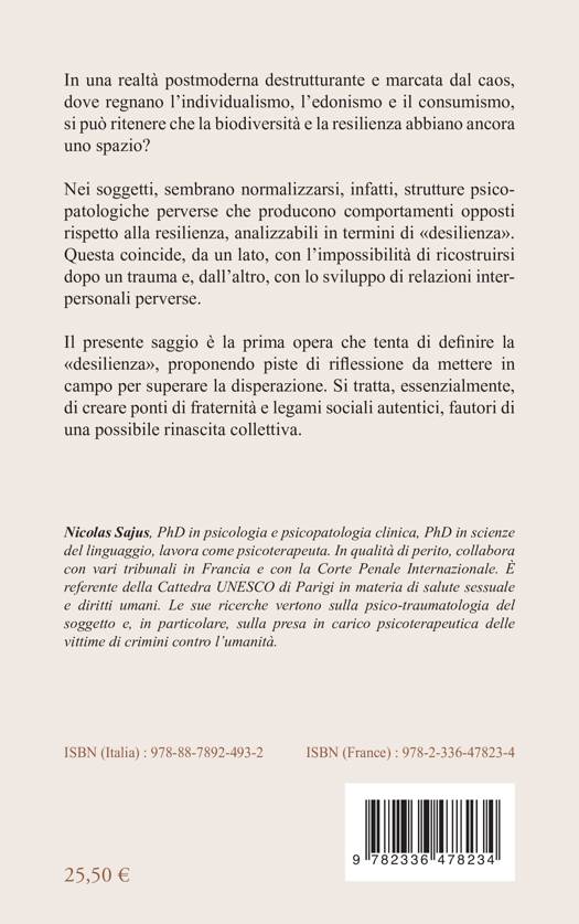 Il presente saggio è la prima opera che tenta di definire la « desilienza », proponendo piste di riflessione da mettere in campo per superare la disperazione. Si tratta, essenzialmente, di creare ponti di fraternità e legami sociali autentici, fautori di una possibile rinascita collettiva.