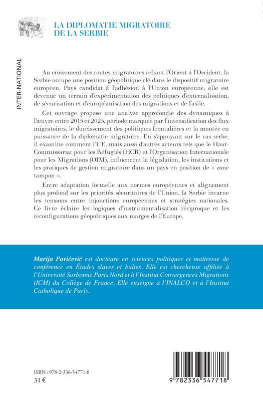 Au croisement des routes migratoires reliant l'Orient à l'Occident, la Serbie occupe une position géopolitique clé dans le dispositif migratoire européen. Pays candidat à l'adhésion à l'Union européenne, elle est devenue un terrain d'expérimentation des politiques d'externalisation, de sécurisation et d'européanisation des migrations et de l'asile. Cet ouvrage propose une analyse approfondie des dynamiques à l'oeuvre entre 2015 et 2023, période marquée par l'intensification des flux migratoires, le durcissement des politiques frontalières et la montée en puissance de la diplomatie migratoire. En s'appuyant sur le cas serbe, il examine comment l'UE, mais aussi d'autres acteurs tels que le Haut-Commissariat pour les Réfugiés (HCR) et l'Organisation Internationale pour les Migrations (OIM), influencent la législation, les institutions et les pratiques de gestion migratoire dans un pays en position de zone tampon . Entre adaptation formelle aux normes européennes et alignement plus profond sur les priorités sécuritaires de l'Union, la Serbie incarne les tensions entre injonctions européennes et stratégies nationales. Ce livre éclaire les logiques d'instrumentalisation réciproque et les reconfigurations géopolitiques aux marges de l'Europe.