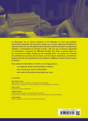 La dissertation est un exercice d’écriture et de rhétorique au cœur des pratiques universitaires françaises, des premières années aux concours. Beaucoup d’étudiants la redoutent, faute d’y avoir été régulièrement confrontés avant l’entrée dans l’enseignement supérieur. La dissertation est pourtant cruciale : elle vise, par un discours argumenté et contextualisé, à présenter les différentes facettes d’un sujet en prenant appui sur des connaissances solides, étayées par des exemples précis. Les auteurs de ce manuel ont parfaitement conscience de ces enjeux et, forts de leurs expériences, ont cherché à proposer des clés de compréhension aux étudiants à différents moments de leur cursus en histoire.