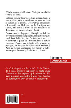 Tout juste née, Félixine est désignée comme messagère de la ruche par la reine des abeilles noires. Elle peut ainsi voyager dans le passé ou l'avenir, aussi loin qu'elle le souhaite, par exemple de Paris à Chambord. Chaque soir, elle raconte ce que ses yeux bleus magiques ont découvert. Une histoire pour découvrir le monde des abeilles mellifères et apprendre à les protéger.
