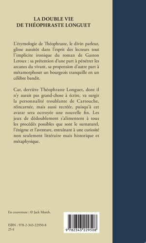 L'étymologie de Théophraste, le divin parleur, glisse aussitôt dans l'esprit des lecteurs tout l'implicite ironique du roman de Gaston Leroux : sa prétention d'une part à pénétrer les arcanes du vivant, sa propension d'autre part à métamorphoser un bourgeois tranquille en un célèbre bandit. Car, derrière Théophraste Longuet, dont il n'y aurait pas grand-chose à écrire, va surgir la personnalité troublante de Cartouche, réincarnée, mais aussi recréée, puisqu'à cet avatar sera octroyée une nouvelle fin. Les jeux de dédoublement s'alimentent à tous les procédés possibles que sont le surnaturel, l'énigme et l'aventure, entraînant à une curiosité non seulement littéraire mais historique et métaphysique.