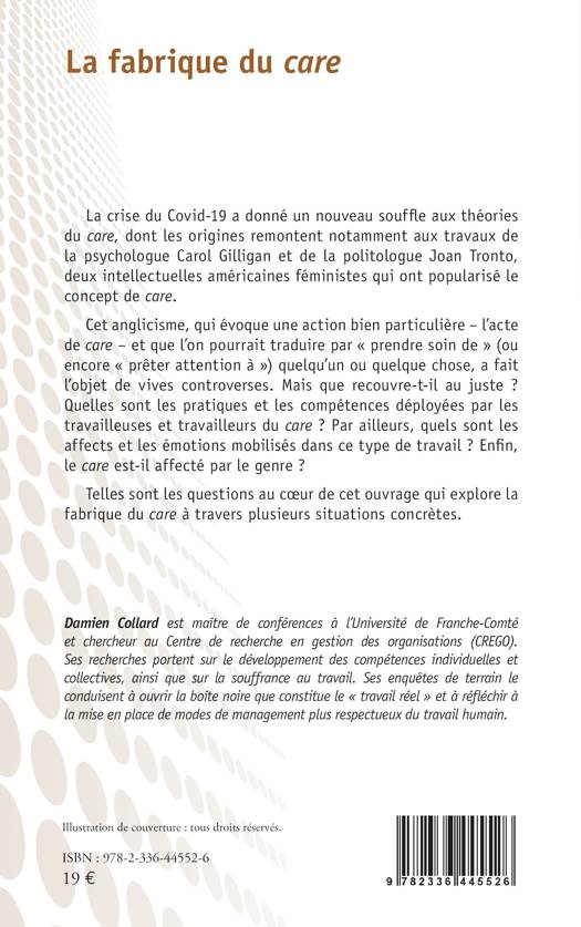 La crise du Covid-19 a donné un nouveau souffle aux théories du care, dont les origines remontent notamment aux travaux de la psychologue Carol Gilligan et de la politologue Joan Tronto, deux intellectuelles américaines féministes qui ont popularisé le concept de care. Cet anglicisme, qui évoque une action bien particulière – l’acte de care– et que l’on pourrait traduire par « prendre soin de » (ou encore « prêter attention à ») quelqu’un ou quelque chose, a fait l’objet de vives controverses. Mais que recouvre-t-il au juste ? Quelles sont les pratiques et les compétences déployées par les travailleuses et travailleurs du care ? Par ailleurs, quels sont les affects et les émotions mobilisés dans ce type de travail ? Enfin, le care est-il affecté par le genre ? Telles sont les questions au cœur de cet ouvrage qui explore la fabrique du care à travers plusieurs situations concrètes.