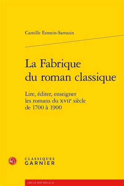 Les parnasses et panthéons du XVIIIe siècle instituent un ensemble de topiques concernant le roman du siècle précédent, ainsi qu'une liste d'auteurs et d'oeuvres. Ces romans, qui ne sont souvent lus que dans des formes abrégées, sont associés à une idée précise du romanesque. Après la Révolution, le canon romanesque est entériné par l'histoire littéraire. La vision normative de la poétique romanesque et l'invention des classiques de la littérature confèrent une place exceptionnelle à Mme de Lafayette. Retracer la généalogie d'un chef-d'oeuvre et s'interroger sur la catégorie de « roman classique » soulève ainsi des questions liées à l'auctorialité, à l'écriture féminine et plus largement à la mémoire de la littérature.