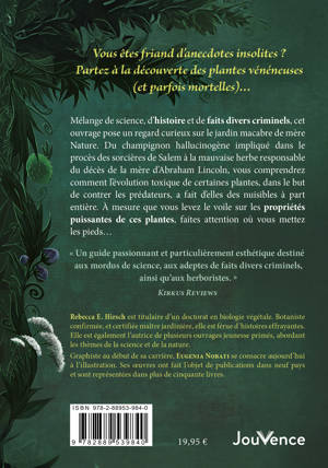 Mélange de science, d’histoire et de faits divers criminels, cet ouvrage pose un regard curieux sur le jardin macabre de mère Nature. Du champignon hallucinogène impliqué dans le procès des sorcières de Salem à la mauvaise herbe responsable du décès de la mère d’Abraham Lincoln, vous comprendrez comment l’évolution toxique de certaines plantes, dans le but de contrer les prédateurs, a fait d’elles des nuisibles à part entière. À mesure que vous levez le voile sur les propriétés puissantes de ces plantes, faites attention où vous mettez les pieds…