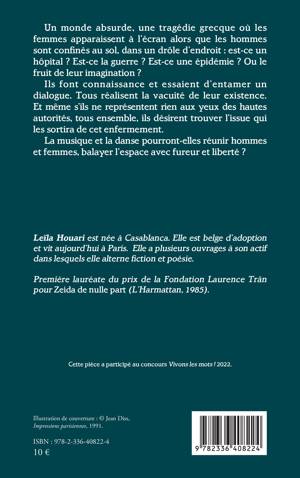 Un monde absurde, une tragédie grecque où les femmes apparaissent à l'écran alors que les hommes sont confinés au sol, dans un drôle d'endroit: est-ce un hôpital ? Est-ce la guerre ? Est-ce une épidémie ? Ou le fruit de leur imagination ? Ils font connaissance et essaient d'entamer un dialogue. Tous réalisent la vacuité de leur existence. Et même s'ils ne représentent rien aux yeux des hautes autorités, tous ensemble, ils désirent trouver l'issue qui les sortira de cet enfermement. La musique et la danse pourront-elles réunir hommes et femmes, balayer l'espace avec fureur et liberté ?
