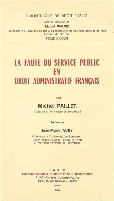La faute du service public en droit administratif français E-BOOK
