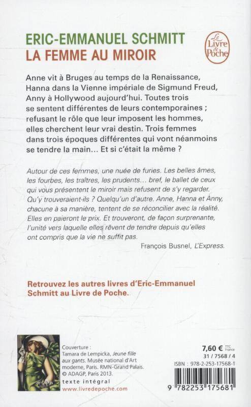 Anne vit a Bruges au temps de la Renaissance, Hanna dans la Vienne imperiale de Sigmund Freud, Anny a Hollywood de nos jours. Toutes trois se sentent differentes de leurs contemporaines; refusant le role que leur imposent les hommes, elles cherchent a se rendre maitresses de leur destin. Trois epoques. Trois femmes. Et si c'etait la meme ?Autour de ces femmes, une nuee de furies. Les belles ames, les fourbes, les traitres, les prudents... bref, le ballet de ceux qui vous tendent le miroir mais refusent de s'y regarder. Qu'y trouveraient-ils ? Quelqu'un d'autre. Anne, Hanna et Anny, chacune a sa maniere tentent de se reconcilier avec la realite. Elles en paieront le prix. Et trouveront, de facon surprenante, l'unite vers laquelle elles revent de tendre depuis qu'elles ont compris que la vie ne suffit pas. Francois Busnel, L'Express.