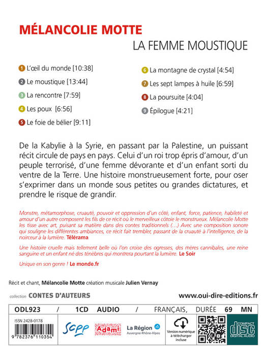 De la Kabylie à la Syrie, en passant par la Palestine, un puissant récit circule de pays en pays. Celui d'un roi trop épris d'amour, d'un peuple terrorisé, d'une femme dévorante et d'un enfant sorti du ventre de la terre. - Oh roi, c'est moi : le moustique. Pas n'importe lequel, puisque je parle. J'ai un marché à te proposer: je sors de ton nez, si tu divorces de tes sept femmes, et si tu te maries avec moi. - Me marier avec un moustique ? Jamais ! Une histoire monstrueusement forte, pour oser s'exprimer dans un monde sous petites ou grandes dictatures, et prendre le risque de grandir.