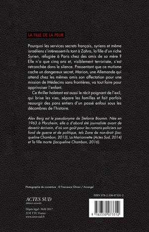 Pourquoi les services secrets français, syriens et même israéliens s'intéressent-ils tant à Zahra, la fi lle d'un riche Syrien, réfugiée à Paris chez des amis de sa mère ? Elle n'a que cinq ans et, visiblement terrorisée, s'est retranchée dans le silence. Pressentant que ce mutisme cache un dangereux secret, Marion, une Allemande qui attend chez les mêmes amis son affectation pour une mission de Médecins sans frontières, va tout faire pour apprivoiser l'enfant. Ce thriller haletant est aussi le récit poignant de l'exil, qui brise les vies, sépare les familles et fait parfois ressurgir des pans entiers d'un passé enfoui sous les décombres de l'histoire.