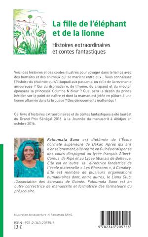 Voici des histoires et des contes illustrés pour voyager dans le temps avec des humains et des animaux qui se marient entre eux. Vous connaissez l'histoire du chat noir qui s'attaquait aux passants ou celle de la revenante amoureuse ? Qui du dromadaire, de l'hyène, du crapaud et du mouton épousera la princesse Coumba N'diour ? Quel sera le destin du prince héritier sur le point de naître et dont la maman est jetée en pâture à une lionne affamée dans la brousse ? Ce livre d'histoires extraordinaires et de contes fantastiques a été lauréat du Grand Prix Sénégal 2016, à la Journée du manuscrit à Abidjan en octobre 2016.