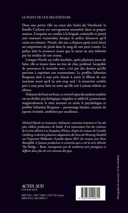 Haletant de bout en bout, ce nouvel opus du tandem suédois est un thriller psychologique singulier et addictif, poursuivant magistralement la série mettant en scène le psychologue et profiler Sebastian Bergman - personnage lunaire, coureur de jupons invétéré, antihéros par excellence.