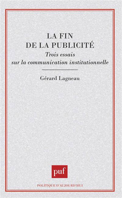 Depuis une dizaine d'années, il semble que la réclame qui nous tient lieu de publicité touche à sa fin. Sa dernière métamorphose présente, sous l'étiquette de la communication institutionnelle, une synthèse des deux soeurs naguère ennemies, la publicité économique et la propagande politique. Trois essais cernent ici le profil de cette nouvelle communication en Amérique, en Asie et en Europe.