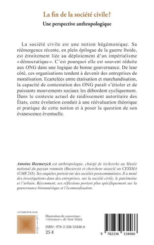 La société civile est une notion hégémonique. Sa réémergence récente, en plein épilogue de la guerre froide, est étroitement liée au déploiement d'un impérialisme démocratique . C'est pourquoi elle est souvent réduite aux ONG dans une logique de bonne gouvernance. De leur côté, ces organisations tendent à devenir des entreprises de moralisation. Ecartelées entre étatisation et marchandisation, la capacité de contestation des ONG paraît s'étioler et de puissants mouvements sociaux les débordent cycliquement. Dans le contexte actuel de raidissement autoritaire des États, cette évolution conduit à une réévaluation théorique et pratique de cette notion et à poser la question de son évanescence éventuelle.