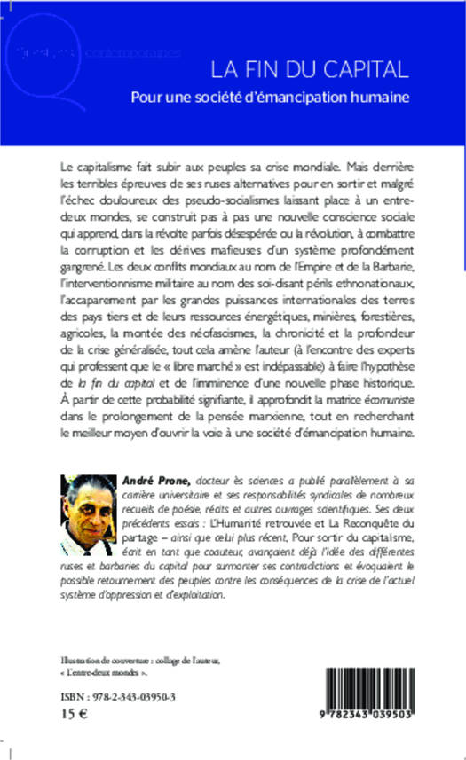 L'interventionnisme militaire, l'accaparement par les grandes puissances internationales des terres et des ressources des pays tiers, la montée des néofascismes, la profondeur de la crise généralisée, tout cela amène l'auteur à faire l'hypothèse de la fin du capital et de l'imminence d'une nouvelle phase historique. A partir de cette probabilité signifiante, il approfondit la matrice écomuniste dans le prolongement de la pensée marxienne, tout en recherchant le meilleur moyen d'ouvrir la voie à une société d'émancipation humaine.