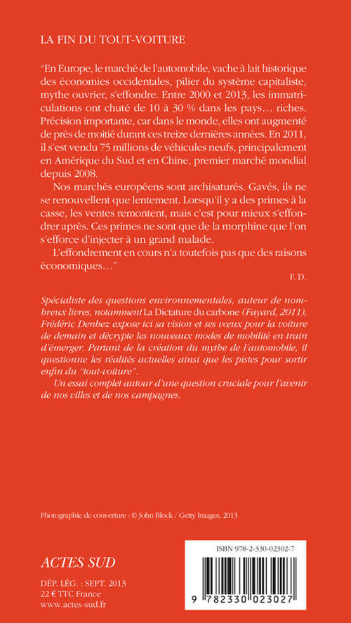 Frédéric Denhez, spécialiste des questions environnementales, auteur en 2011 chez Fayard du livre «La Dictature du carbone», expose ici ses visions et voeux pour la voiture de demain, ainsi que les modes de mobilité en train d'émerger. Partant de la création du mythe de l'automobile, il questionne les réalités actuelles ainsi que les pistes pour sortir enfin du tout-voiture. Un essai complet autour d'une question cruciale pour l'avenir de nos villes et nos campagnes.
