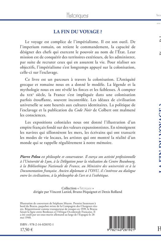 Le voyage est complice de l'impérialisme. Il est son outil. De l'imperium romain, on retient le commandement, la capacité de désigner des chefs qui exercent le pouvoir au nom de l'État. Leur mission est de conquérir des territoires extérieurs, de les administrer, par suite de recruter ceux qui en assurent la vie. Pour réaliser ses objectifs, l'impérialisme s'est longtemps appuyé sur la colonisation, celle-ci sur l'esclavage. Ce livre est un parcours à travers la colonisation. L'Antiquité grecque et romaine nous en a donné le modèle. La légende et la mythologie nous en ont révélé les forces et les faiblesses. À compter du XIXe siècle, la France s'est impliquée dans une colonisation parfois étouffante, souvent incontrôlée. Les idéaux de civilisation universelle se sont heurtés aux cultures identitaires. Les expositions coloniales nous ont donné l'illustration d'un empire français fondé sur des valeurs expansionnistes. En témoignent les navires qui sillonnèrent les mers, les écrivains qui ont transcrit les modes de vie locaux, les artistes qui ont montré la réalité d'un monde qui se rappelle régulièrement à notre mémoire.