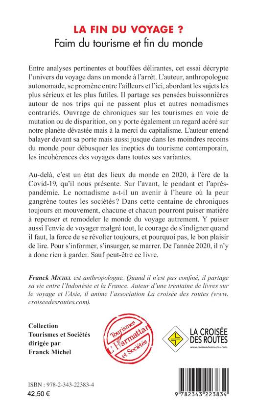 Entre analyses pertinentes et bouffées délirantes, cet essai décrypte l’univers du voyage dans un monde à l’arrêt. L’auteur, anthropologue autonomade, se promène entre l’ailleurs et l’ici, abordant les sujets les plus sérieux et les plus futiles. Il partage ses pensées buissonnières autour de nos trips qui ne passent plus et autres nomadismes contrariés. Ouvrage de chroniques sur les tourismes en voie de mutation ou de disparition, on y porte également un regard acéré sur notre planète dévastée mais à la merci du capitalisme. L’auteur entend balayer devant sa porte mais aussi jusque dans les moindres recoins du monde pour débusquer les inepties du tourisme contemporain, les incohérences des voyages dans toutes ses variantes.