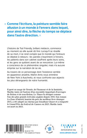 L’histoire de Tod Friendly, brillant médecin, commence au moment où elle aurait dû finir. Lorsqu’il se réveille de sa mort, il se rend compte que le monde qui l’entoure se déploie à rebours : les paroles s’expriment à l’envers, les patients dans son cabinet souffrent après leurs soins, et les gens se quittent avant de se rencontrer. Lui-même a conscience de ce phénomène singulier, mais n’a aucune emprise sur la narration de sa vie. Au travers de ce personnage dont l’existence semble en apparence anodine, Martin Amis nous emmène de New York à Auschwitz, et nous confronte aux aspects les plus dérangeants de notre humanité.