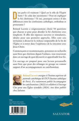Dieu parle-t-il vraiment ? Quel est le rôle de l'Esprit Saint ? Et celui des sacrements ? Peut-on expliquer la foi chrétienne ? Si oui, pourquoi existe-t-il des différences entre les confessions catholique, orthodoxe et protestante ? Roland Lacroix a soigneusement choisi 50 questions que chacun se pose pour aborder la foi chrétienne avec simplicité. Il offre des réponses ouvertes et stimulantes, idéales pour une première approche. Elles sont une invitation à découvrir la richesse inépuisable de la foi de l'Église et à entrer dans l'expérience de la rencontre avec Jésus-Christ. Commençants et recommençants, personnes en recherche aussi bien que chrétiens depuis l'enfance, tous trouveront dans cet ouvrage de quoi découvrir et approfondir leur foi. Cet ouvrage est proposé pour une lecture personnelle aussi bien que pour des échanges en groupe ou comme support d'un accompagnement au catéchuménat.