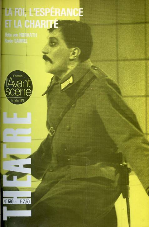 La Foi, l'espérance et la charité : (Ödön von Horvath) Dans l’Allemagne des années 30, une jeune fille, Elisabeth, qui a besoin d’argent, se présente à l’institut médico-légal pour vendre son corps quand elle sera morte. Comme ce n’est pas légal, elle se procure cependant les 150 marks désirés en promettant de fournir au préparateur du laboratoire un permis de transit. Elisabeth est vendeuse en corsets. Le préparateur la retrouve. Incapable de rendre l’argent, elle est condamnée à 15 jours de prison. Dans les bureaux de l’assistance sociale Alphonse Klostermeyer, un employé, lui prêche foi, espérance et charité, parce qu’elle lui rappelle sa fiancée décédée. Elle va partir avec lui. Quand le chef de la police viendra chez elle pour enquête, il trouvera son adjoint Alphonse caché dans un placard. Elisabeth se jette dans un canal, révoltée contre Alphonse, contre le sauveteur, contre la vie... Les agents de police partent à la revue au son d’une marche militaire...