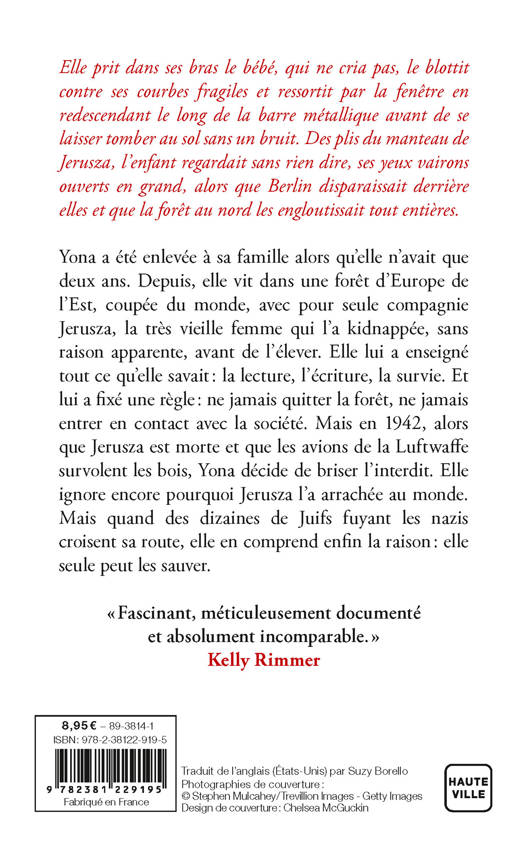 Yona a été dérobée à sa famille alors qu'elle n'avait que deux ans. Depuis, elle vit dans une forêt d'Europe de l'Est, coupée du monde, avec pour seule compagnie, Jerusza, la très vieille femme qui l'a enlevée, sans raison apparente, avant de l'élever. Elle lui a enseigné tout ce qu'elle savait : lire, écrire, prier, survivre. Et lui a fixé une règle : ne jamais quitter la forêt, ne jamais entrer en contact avec la société. Mais en 1941, alors que Jerusza décède et que les avions de la Luftwaffe survolent les bois, Yona décide de briser l'interdit. Elle ignore encore pourquoi Jerusza l'a arrachée au monde. Mais quand des dizaines de Juifs fuyant les nazis croisent sa route, elle en comprend enfin la raison : elle seule peut les sauver.