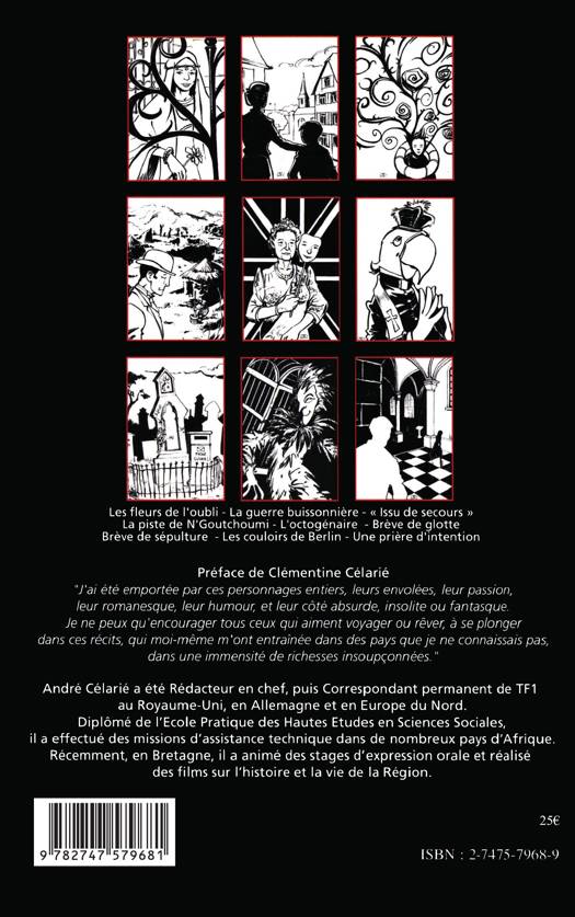 André Célarié a une formation de journaliste. Aujourd'hui retraité, il se lance dans un nouveau type d'écriture avec toujours "l'idée d'avancer, de ne jamais se reposer sur ce qu'il est, d'enrichir son esprit et de s'inventer. Ses voyages, ses rencontres, ses expériences sont très présents dans ses nouvelles, et nous engage dans un parcours qui est un mélange de pays visités, d'instants vécus et d'émotions ressenties ou... imaginées. (...)" Toutes ces histoires sont des petits films qui invitent ceux qui aiment rêver et voyager à se plonger dans un univers riche de possibles. Clémentine Célarié.