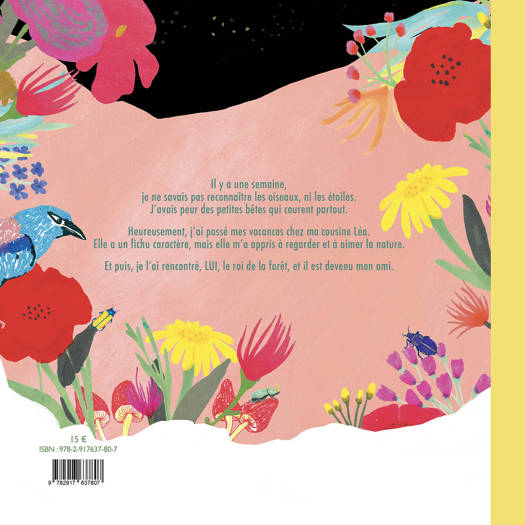 Il y a une semaine, je ne savais pas reconnaître les oiseaux, ni les étoiles. J'avais peur des petites bêtes qui courent partout.<br /> Heureusement, j'ai passé mes vacances chez ma cousine Léa. Elle a un fichu caractère, mais elle m'a appris à regarder et à aimer la nature.<br /> Et puis, je l'ai rencontré, LUI, le roi de la forêt et il est devenu mon ami.<br /> Un album doux et drôle pour aimer découvrir la nature.